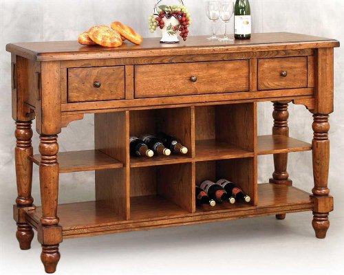 31-904RTA Features -Buffet-Three drawers and three wooden knobs-Scraped and dent effect Construction -Constructed of solid hackberry and oak veneer ColorFinish -Distressed rustic tuscany finish Assembly Instructions -Assembly required Collection -Tuscany collection Three drawers Wine co