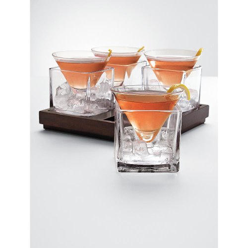 Martini lovers have endless arguments over the merits of vodka versus gin olives versus onions but the one thing they all agree on is that martinis should be served icy-cold Our martini glasses are designed to sit between sips in ice-filled glass cubes Exclusively from RedEnvelope set includes