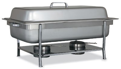 Perfect for main dishes Includes one assembled frame with die cast legs and handles one 4-38 deep drip less water pan one 2-12 deep full-size pan two fuel holders and one dome cover lid with handles 12