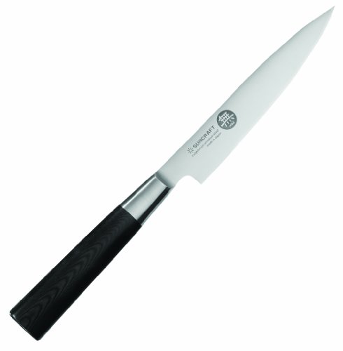 This fine edge traditional style Messermeister Mu Fusion 4-12-inch Utility Knife is one of the most frequently used knives in the kitchen The fine-edge thin-bladed knife is the most common and is used for cutting and slicing smaller items Made in Seki Japan 1-Piece fully stamped 15-Degree pre
