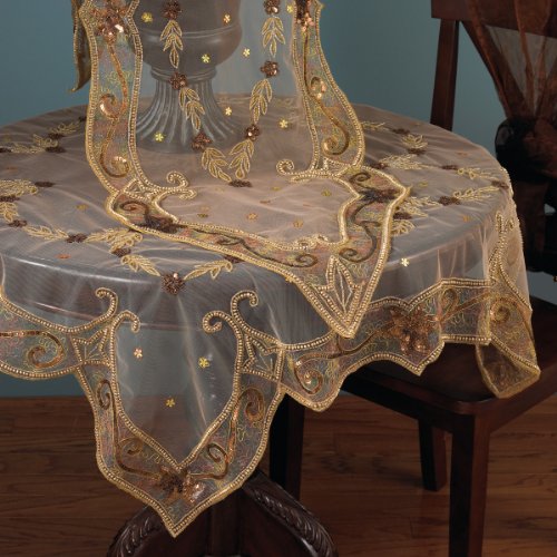 This stunning tablecloth hand beaded in gold Jasmine design will add a luxurious touch to your seasonal table Its amazing in any occasion and will become an valuable addition to your dcor Original Price 117-180 Size Option 40 60 Shape square Material polyester quality beads dry clean