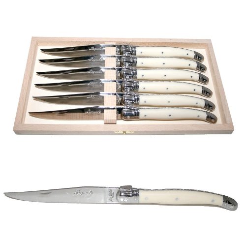 ... Authentic French LAGUIOLE® - 6 STEAK KNIVES - IVORY color - in HEAVIER 25/10 stainless steel - blade: 2.5 mm thick: very sturdy! (original genuine Jean DUBOST LAGUIOLE quality family white colour table flatware/cutlery setting for 6 people - with CERTIFICATE of AUTHENTICITY - dishwasher safe! - delivered in a wooden box - gift wrap available - direct from FRANCE)Cheapest Price 2013 Authentic French LAGUIOLE® - 6 STEAK KNIVES - IVORY color - in HEAVIER 25/10 stainless steel - blade: 2.5 mm thick: very sturdy! (original genuine Jean DUBOST LAGUIOLE quality family white colour table flatware/cutlery setting for 6 people - with CERTIFICATE of AUTHENTICITY - dishwasher safe! - delivered in a wooden box - gift wrap available - direct from FRANCE)